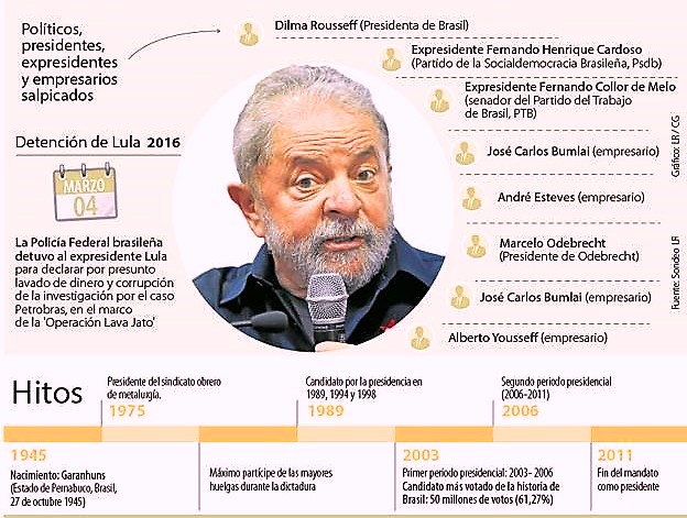 De eso a la caída de Dilma no faltó mucho. El golpe se consumó, a la cabeza de Michel Temer su propio vice-presidente, cuando Dilma fue condenada por haber hecho un cambio contable en una partida de los presupuestos del estado, práctica habitual en Brasil al menos desde 1990 sin que nunca nadie dijera nada. No fue condenada por corrupción, aunque estaba rodeada de oleadas de escándalos que por entonces ya afectaban incluso al entorno de Lula, su mentor.