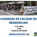 APIRILAK 17an 11:00 tan GIPUZKOAKO PLAZAtik HITZARMENA ORAIN! CUIDADOS DE CALIDAD EN RESIDENCIAS ¡NEGOCIACIÓN YA!